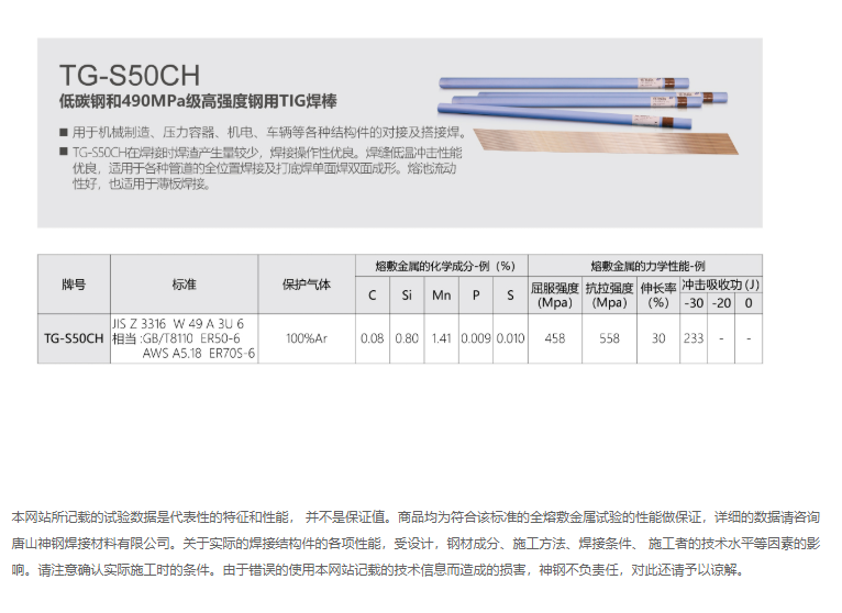 TG-S50CH 低碳鋼和490MPa級高強(qiáng)度鋼用TIG焊棒