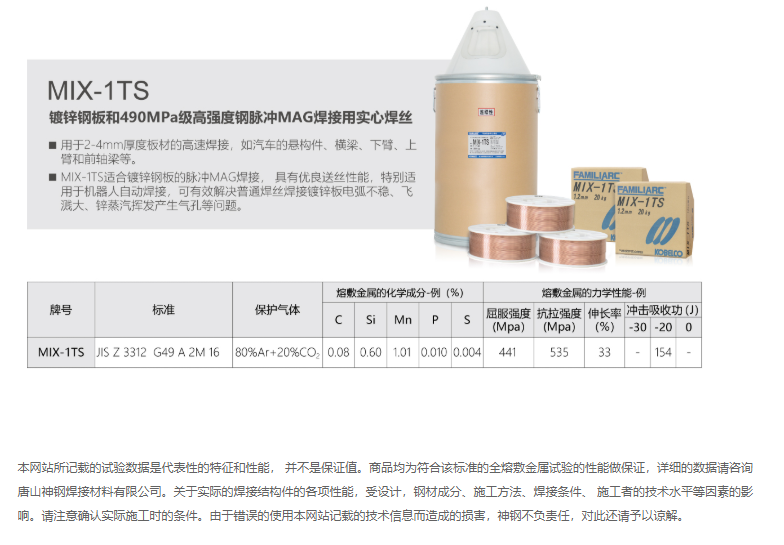 MIX-1TS 鍍鋅鋼板和490MPa級高強(qiáng)度鋼脈沖MAG焊接用實(shí)心焊絲